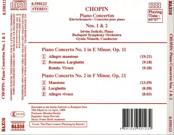 | Artista | Frédéric Chopin | Budapest Symphony Orchestra | Istvan Szekely | Gyula Németh |