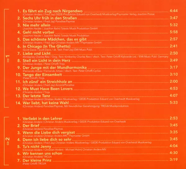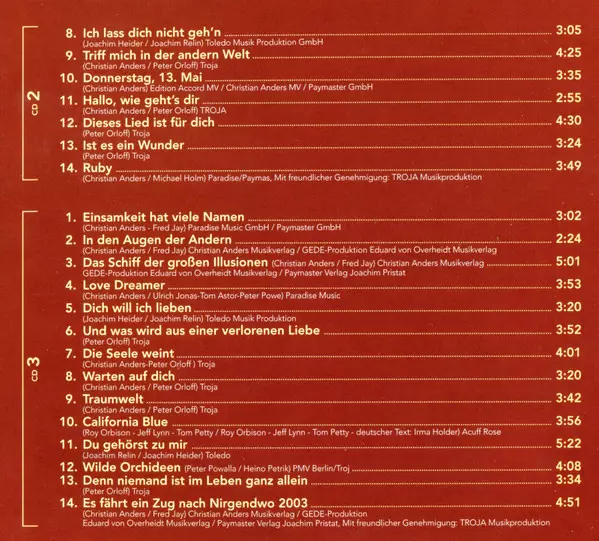 Christian Anders: Die Großen Erfolge versione su 3CD/Set di cofanetti in standard edizione. Questa particolare edizione è stata pubblicata in Austria nella casa editrice Eurotrend in data 16. agosto 2013. Album comprende generi Pop e Schlager.