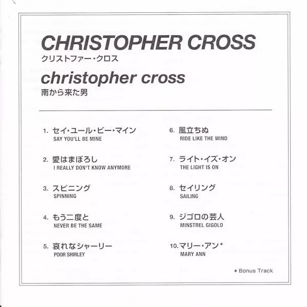 Christopher Cross: Christopher Cross LTD versione su CD in limitati rimasterizzati edizione. Questa particolare edizione è stata pubblicata in Giappone nella casa editrice Warner Bros. Records in data 25. luglio 2018. Album comprende generi Rock, Pop e Pop Rock. Shm CD Paper Sleeve Limited Edition.