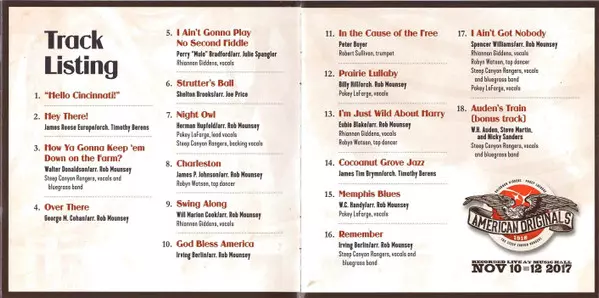 | Artista | Rhiannon Giddens | Pokey LaFarge | Cincinnati Pops Orchestra | John Morris Russell | Steep Canyon Rangers |