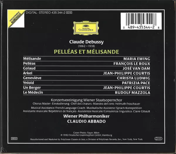 | Artista | Wiener Philharmoniker | Claude Debussy | Claudio Abbado | Christa Ludwig | José van Dam | Konzertvereinigung Wiener Staatsopernchor | Maria Ewing | François Le Roux | Jean-Philippe Courtis |