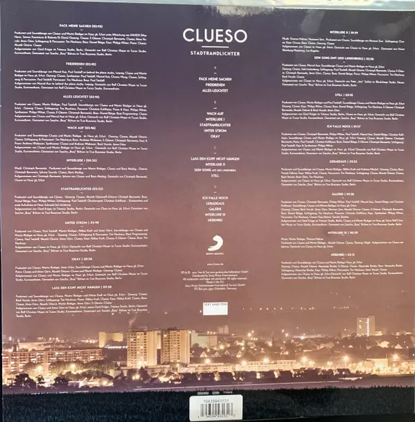 Clueso: Stadtrandlichter versione su vinile 2LP in standard edizione. Questa particolare edizione è stata pubblicata in Germania, Austria e Svizzera nella casa editrice Text Und Ton in data 10. dicembre 2021. Album comprende generi Rock e Pop.