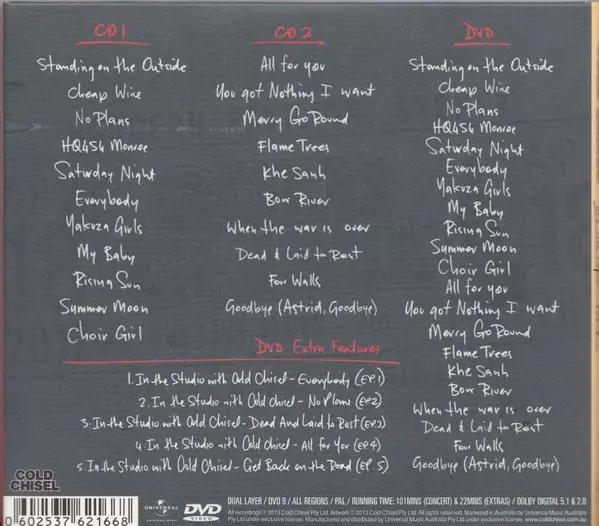 Cold Chisel: The Live Tapes - Vol 1 DLX versione su 2CD/DVD in deluxe edizione. Questa particolare edizione è stata pubblicata in Australia nella casa editrice Universal Music in collaborazione con Cold Chisel Music in data 3. dicembre 2013. Album comprende generi Rock, Pop, Blues, Rock & Roll e Pub Rock. 2CD + DVD Deluxe Edition.