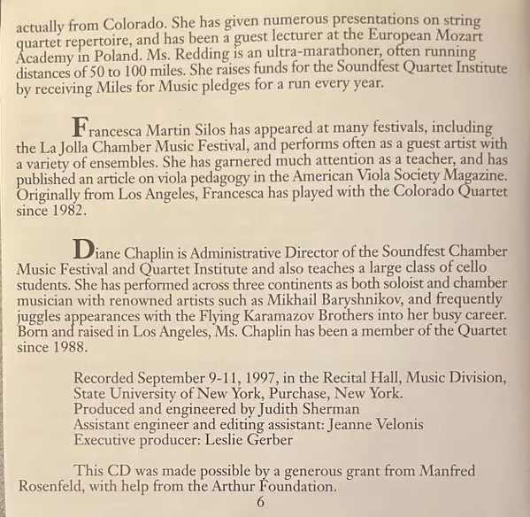 | Artista | Franz Schubert | Felix Mendelssohn-Bartholdy | Colorado Quartet |