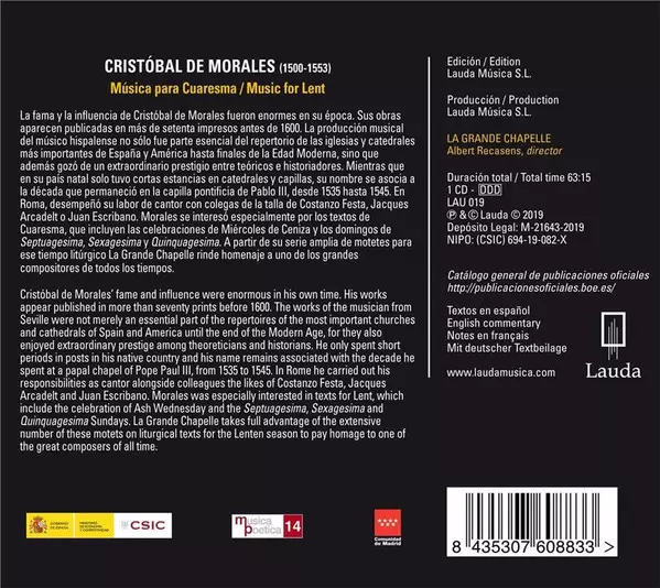 Artista | Cristóbal de Morales | La Grande Chapelle | Albert Recasens |