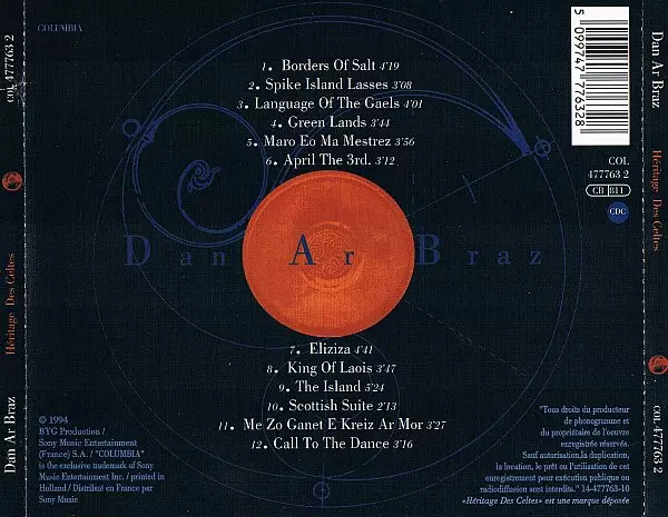 Dan Ar Braz: Héritage Des Celtes versione su CD in standard edizione. Questa particolare edizione è stata pubblicata in Europa nella casa editrice Columbia in data 30. agosto 2001. Album comprende generi Folk, World, & Country e Musica celtica.