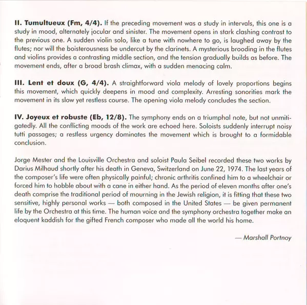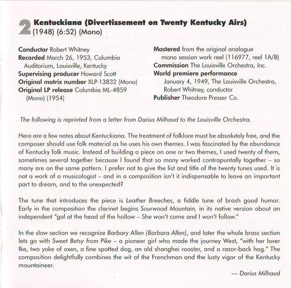 | Artista | Darius Milhaud | The Louisville Orchestra |