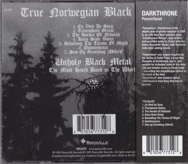 Darkthrone "Panzerfaust" - naprosto kultovní album, které by měl mít ve své skříni každý fanoušek black metalu. Nové vydání alba z roku 1995.