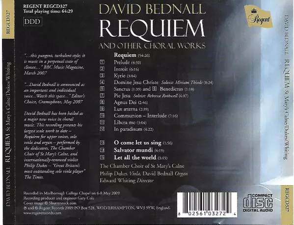 | Artista | Philip Dukes | David Bednall | Edward Whiting | The Chamber Choir Of St. Mary's Calne |