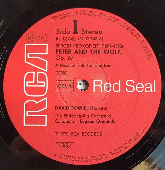 | Artista | David Bowie | Sergei Prokofiev | The Philadelphia Orchestra | Eugene Ormandy | Benjamin Britten |