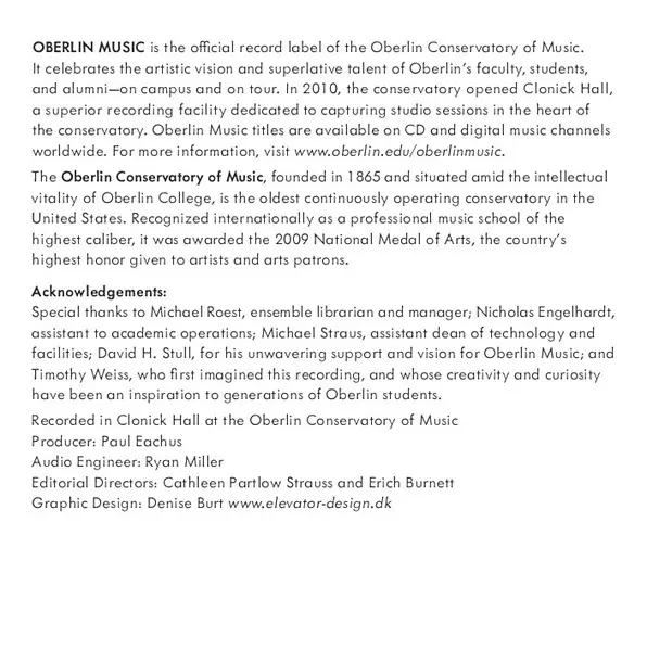 | Artista | Tim Weiss | David Bowlin | The Oberlin Contemporary Music Ensemble |