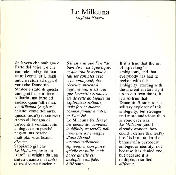 | Titolo | Le Milleuna |
