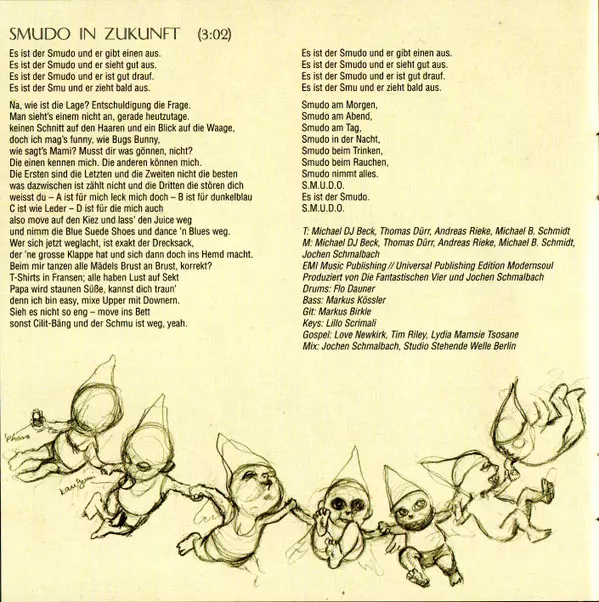 Lyrics By Andreas Rieke, Michael B. Schmidt, Michael DJ Beck, Thomas Dürr | Mixed By Ralf Christian Mayer | Music By Andreas Rieke, Michael B. Schmidt, Michael DJ Beck, Paul Mogg, Thomas Dürr | Producer Die Fantastischen Vier, Paul Mogg | Synthesizer [Moog] Lillo Scrimali