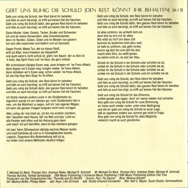 Lyrics By, Music By Andreas Rieke, Michael B. Schmidt, Michael DJ Beck, Thomas Dürr | Mixed By Ralf Christian Mayer | Producer Die Fantastischen Vier, Don Tone, Plattenpapzt