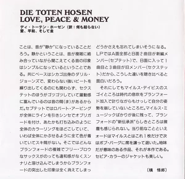 Die Toten Hosen: Love, Peace & Money versione su CD in standard edizione. Questa particolare edizione è stata pubblicata in Germania nella casa editrice EastWest in collaborazione con Totenkopf in data 5. giugno 2001. Album comprende generi Rock e Punk.