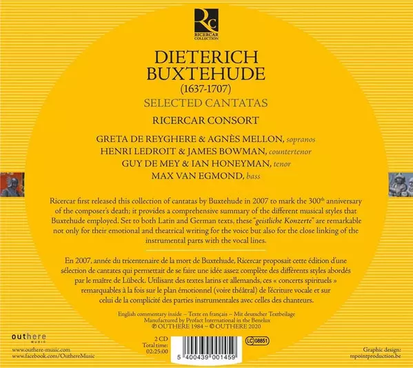 Dieterich Buxtehude: Kantaten versione su 2CD in standard edizione. Questa particolare edizione è stata pubblicata in Europa nella casa editrice Ricercar in data 3. aprile 2020. Album comprende generi Musica classica e Musica barocca.