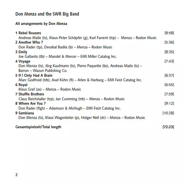 Artista | SWR Big Band | Don Menza |