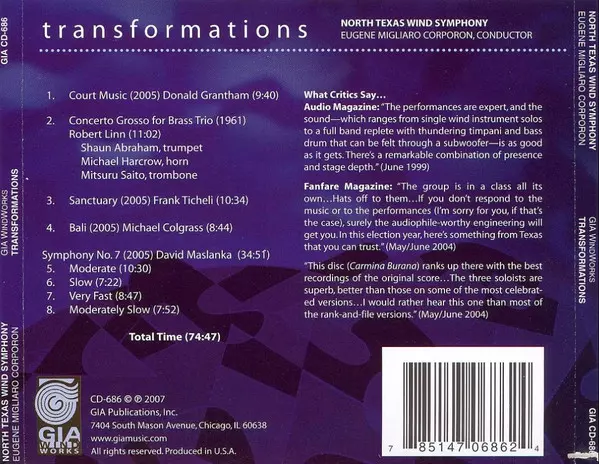 | Artista | Eugene Corporon | North Texas Wind Symphony | Donald Grantham |