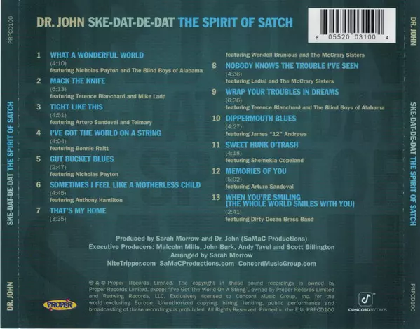 Dr. John: Ske-Dat-De-Dat: The Spirit Of Satch LTD versione su CD in limitati edizione. Questa particolare edizione è stata pubblicata in Europa nella casa editrice The Last Music Company in collaborazione con Proper Records (2) in data 12. giugno 2020. Album comprende generi Jazz e Funk / Soul.