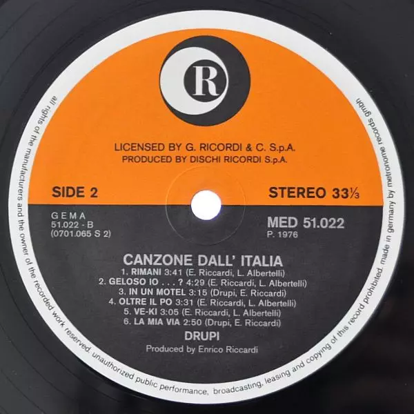LP Drupi: Canzone Dall' Italia