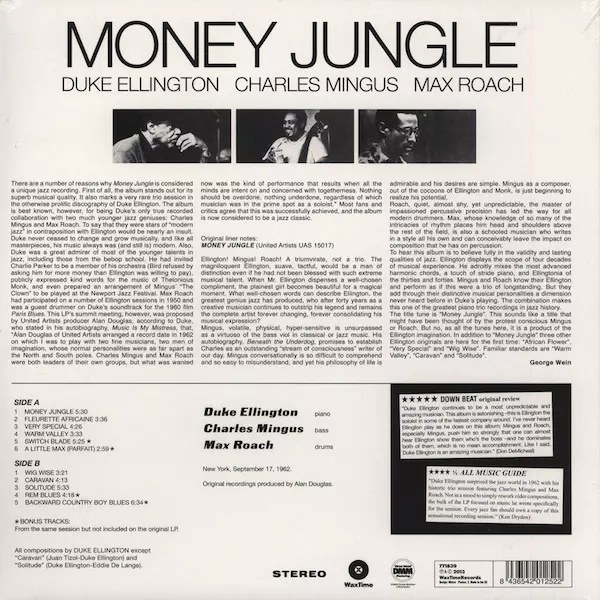 "Ein Triumvirat, kein Trio", writes George Wein in the CD liner notes. "Diese Kombination macht das Album zu einem der größten Piano-Trios der Jazzgeschichte", heißt es weiter. Rezensionen "Mingus, Roach und Ellington bewegen sich wie in einem Wettkampf, sie liegen im Clinch miteinander, swingend, drivend, suchend. Charles Mingus und Max Roach, ...