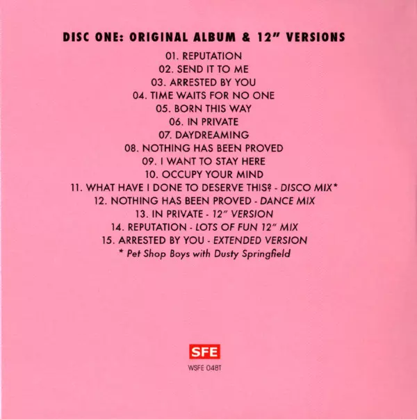 | CD1-11 | Pet Shop Boys, Dusty Springfield: What Have I Done To Deserve This? (Disco Mix) | 8:10 min | |