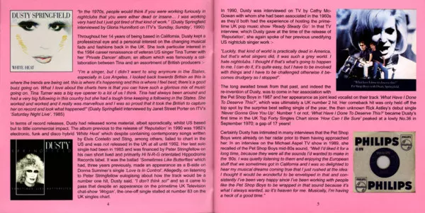 | CD1-6 | Dusty Springfield: In Private | 4:23 min | |