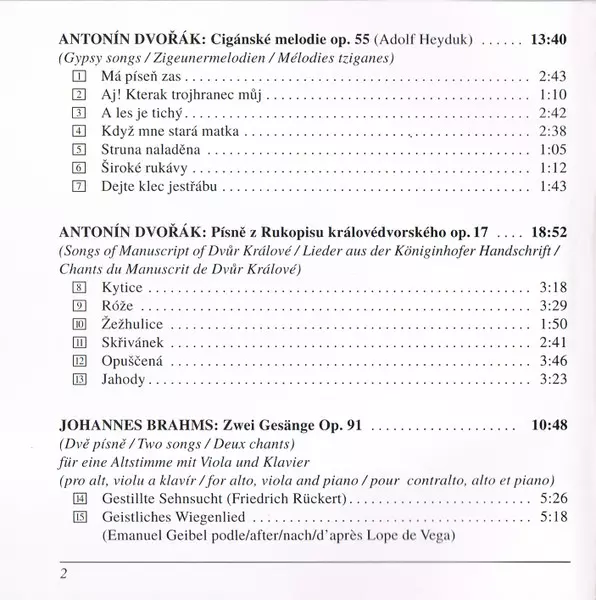 | Artista | Antonín Dvořák | Johannes Brahms |