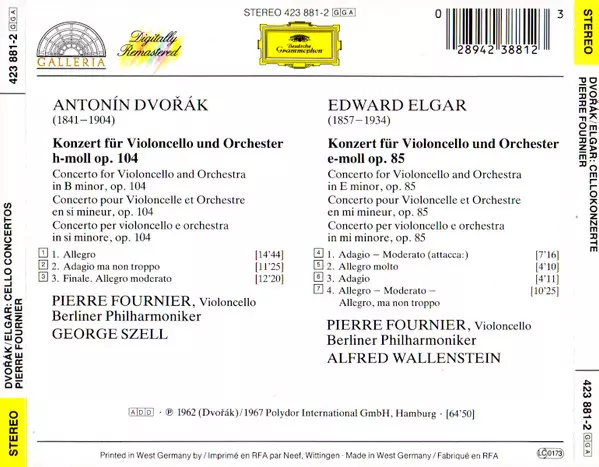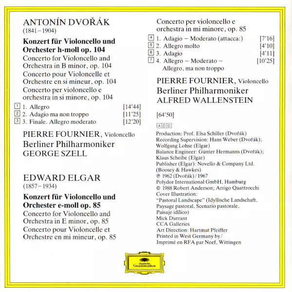 | Artista | Berliner Philharmoniker | Antonín Dvořák | Sir Edward Elgar | George Szell | Pierre Fournier | Alfred Wallenstein |