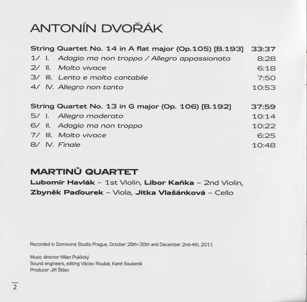 | Artista | Antonín Dvořák | Martinů Quartet |