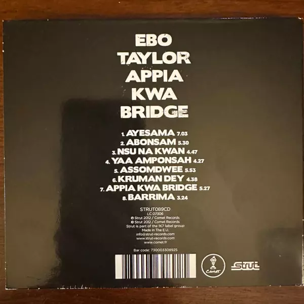 Ebo Taylor: Appia Kwa Bridge versione su CD in standard edizione. Questa particolare edizione è stata pubblicata in REGNO UNITO nella casa editrice Strut in collaborazione con Comet Records in data 12. aprile 2012. Album comprende generi Folk, World, & Country, Funk / Soul, Afrobeat e Highlife.
