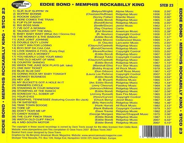 | Bass Marcus Van Story | Drums Jimmy Van Eaton | Engineer Stan Kesler | Lead Guitar Al Hopson | Piano Jerry Lee (Smoochy) Smith | Producer Bill Kilgore (2) | Rhythm Guitar Charlie Feathers | Vocals, Rhythm Guitar Eddie Bond | Written-By Bobby Krajca | |||