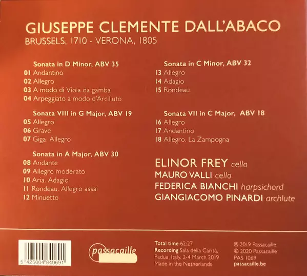 | Titolo | Giuseppe Clemente Dall'Abaco: Cello Sonatas |