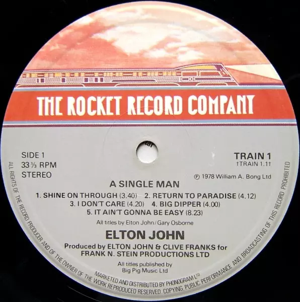 Elton John: A Single Man versione su vinile LP in standard edizione. Questa particolare edizione è stata pubblicata in REGNO UNITO nella casa editrice The Rocket Record Company in data 16. ottobre 1978.