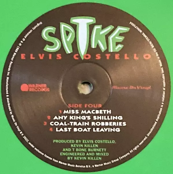 Elvis Costello: Spike LTD | NUM | CLR versione su vinile 2LP in limitati numerati individualmente colorati edizione. Questa particolare edizione è stata pubblicata in Europa nella casa editrice Warner Records in collaborazione con Music On Vinyl in data 11. marzo 2022. Album comprende generi Rock, Alternative rock e Rock & Roll. 180g Numbered Gatefold Coloured Light Green Vinyl Limited Edition.