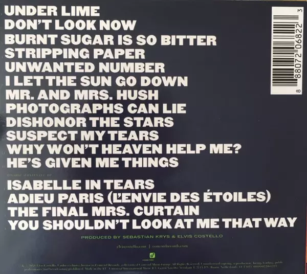 Alto Flute Mark McGregor (2) | Bass Davey Faragher | Bass Clarinet AK Coope | Cello Finn Manniche, Olivia Blander | Double Bass Les Kasprzak | Drums Pete Thomas | Engineer [Assistant] Spencer Bleasdale | Engineer [Rhythm Section] John Paterno | Engineer [Steve Nieve Recording] Guillaume Lejault | Engineer [Vocal, Orchestral & Additional] Paul Silveira | Flugelhorn Brad Turner (2) | Lyrics By, Music By Elvis Costello | Mixed By Paul Silveira | Piano [Motif] Steve Nieve | Producer Elvis Costello | Viola Henry Lee (2), Isabelle Roland, Markus Takizawa | Violin Cameron Wilson (2), Domagoj Ivanovic, Ken Lin, Rick Dorfer, Yun Jung | Violin [Concertmaster] Mark Ferris | Vocals, Piano [Main Accompanying], Electric Guitar, Celesta Elvis Costello