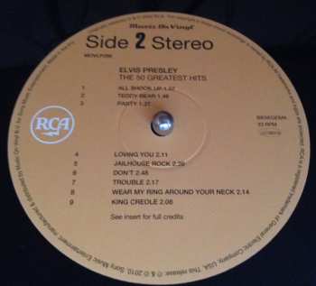 50 největších hitů Elvise Presleyho v jednom těžkém trojnásobném LP balení na 180 gramovém audiofilním vinylu, doplněném stylovým černobílým informačním listem. Zahrnuje všechny hity od "That's All Right" z roku 1954 až po "Lay Down" (1977).[*] 180 GRAMS VINYL