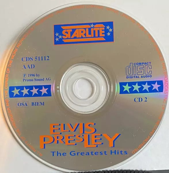 Elvis Presley: The Greatest Hits versione su 3CD in standard edizione. Questa particolare edizione è stata pubblicata in Europa nella casa editrice Starlite (4) anno 1996. Album comprende generi Rock e Rock & Roll.