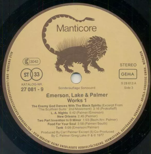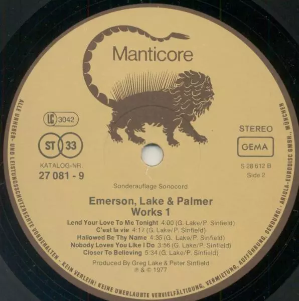 | Co-producer Greg Lake | Written-By Carl Palmer, Harry South | |||
