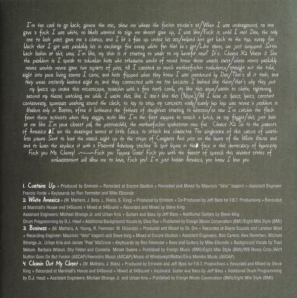 Engineer [Assistant] Francis Forde | Keyboards Mike Elizondo, Ron "NEFF-U" Feemstar | Producer Eminem | Recorded By, Mixed By Mauricio "Veto" Iragorri