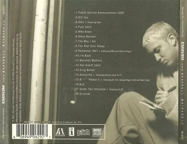 Eminem: The Marshall Mathers LP versione su CD in standard edizione. Questa particolare edizione è stata pubblicata in Europa nella casa editrice Aftermath Entertainment in collaborazione con Interscope Records in data 23. maggio 2000.