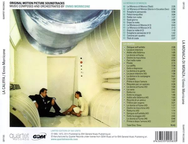 | Titolo | La Monaca Di Monza - La Califfa (Original Motion Picture Soundtracks) LTD |