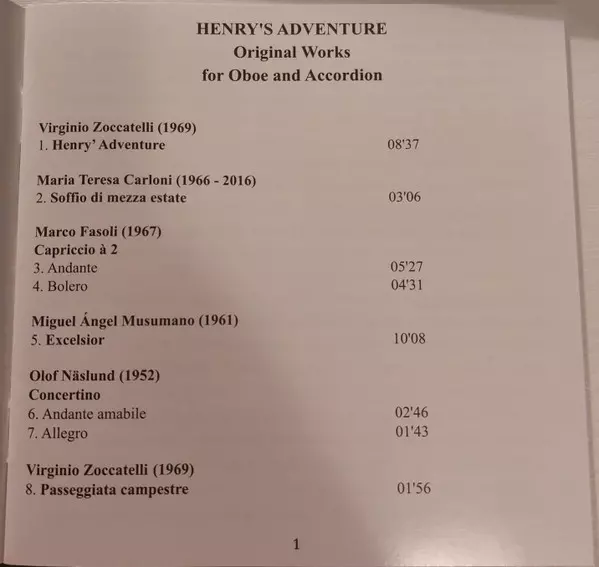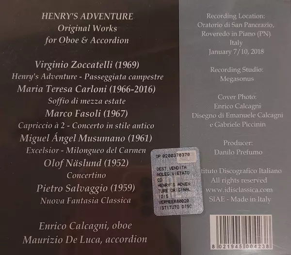 CD Henry's Adventure: Original Works for Oboe And Accordion