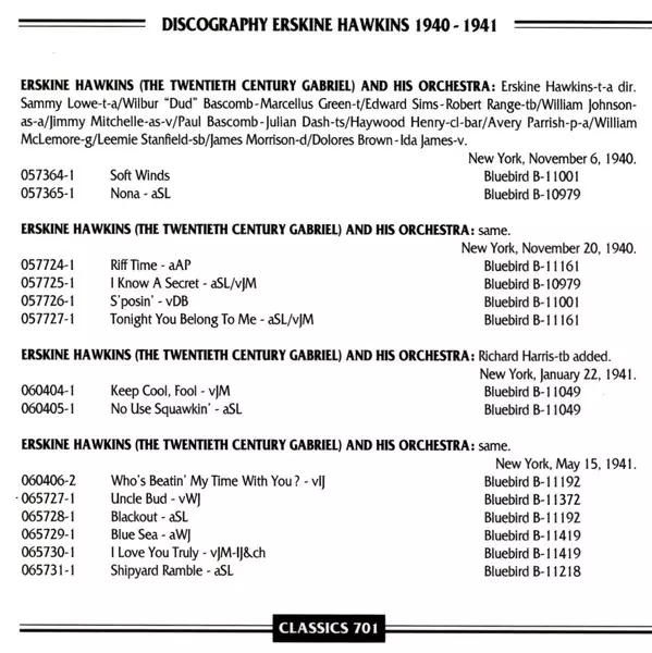 | Artista | Erskine Hawkins And His Orchestra |
