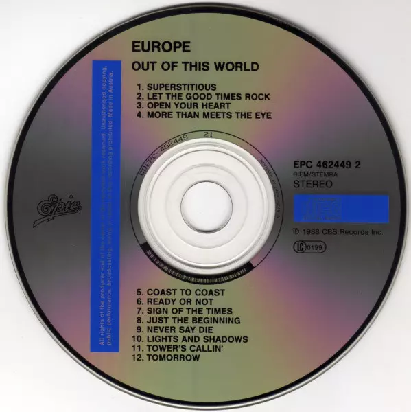 "Out of This World" is the fourth studio album by Swedish rock band Europe, originally released in 1988. "Open Your Heart", "Let The Good Times Rock", "More Than Meets The Eye" and "Superstitious". The latter is probably one of Europe's most popular songs. The album was produced by Ron Nevison, who has been named Best Producer of the Year four t...