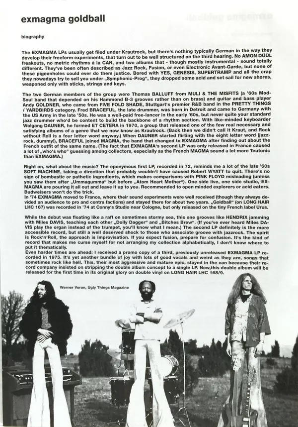 German underground jazz fusion super trio of sorts with their roots in Stuttgart. Keyboard player Thomas Balluff had started with the "soul" band Muli & The Misfits in the 1960's, whereas the guitar/bassist Andy Göldner came from Five Fold Shade . Drummer Fred Braceful was the odd ...