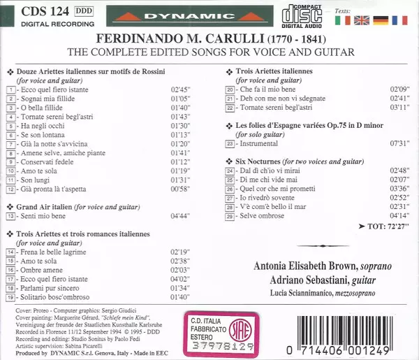 | Artista | Ferdinando Carulli | Adriano Sebastiani | Antonia Elisabeth Brown |