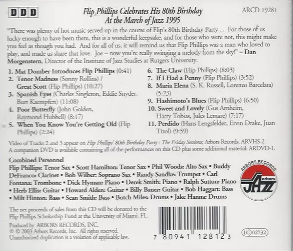 | Titolo | Flip Philllips Celebrates His 80th Birthday At The March of Jazz 1995 |
