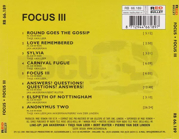 Focus 3 is an album by the Dutch rock band Focus. It is the band's third studio album and contains the hit single "Hocus Pocus". The album has been praised by critics for its eclectic mix of rock, jazz and classical music.
