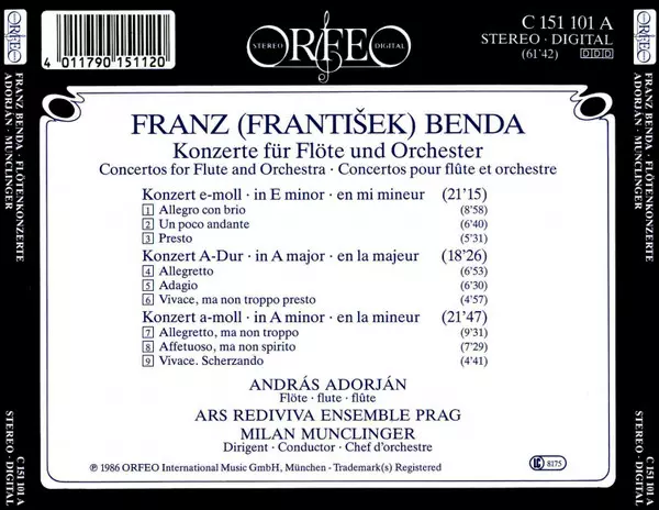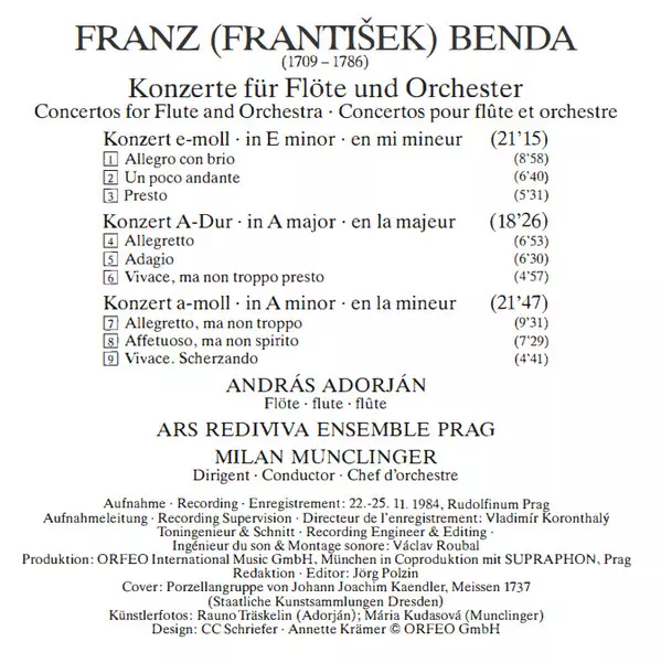 | Artista | Ars Rediviva Ensemble | Milan Munclinger | František Benda | András Adorján |